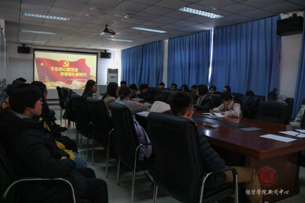 2017年12月4日中午,学院在经管楼401召开了英国威廉集团“不忘初心跟党走 青春献礼新时代”十九大主题系列活动经验交流会,团委书记刘海燕、副书记单珊、学院全体团支书参加了此次座谈会。