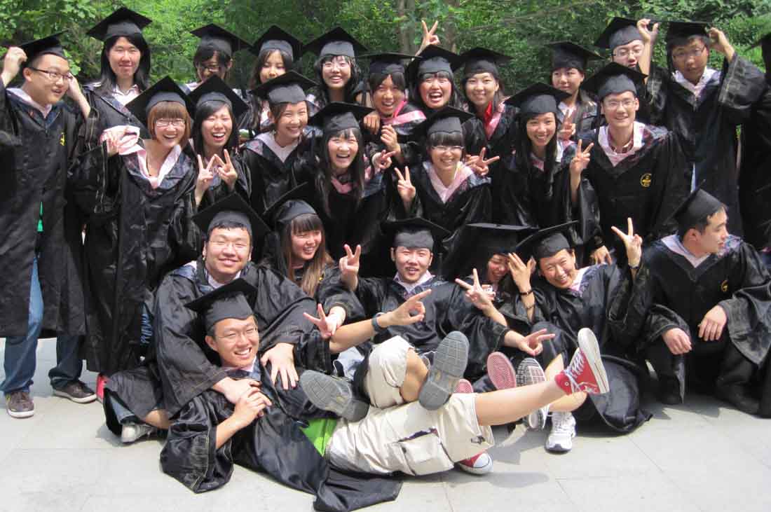 2010年6月9日上午9时,在这阳光明媚的六月天,经管学院即将毕业的大四学生在礼堂门口合影留念。