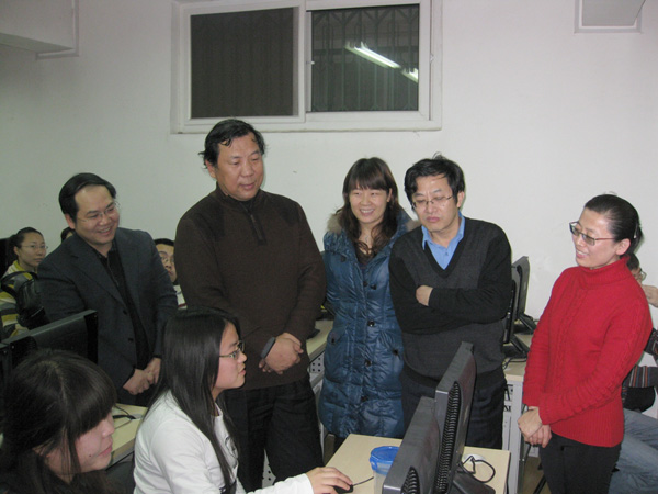 2010年1月15日上午,副校长杜晓林教授在经管学院院长何忠伟、总支书记李华的陪同下现场观摩了经管学院“现代服务业综合实训”。杜晓林副校长认真地查看核心企业及工商局、税务局、商业银行、会计事务所、第三方物流、招投标中心、国际货代等外围服务企业等业务训练流程,仔细地听取了各岗位小组负责人的业务汇报和同学们的收获和体会,并就“现代服务业综合实训”教学团队教师组成、实践内容、实践组织、实践对象进行了细致询问。杜晓林副校长对经管学院创新实践教学模式,引导学生开展跨专业、跨领域的综合实训活动,建立知识传授、能力培养、素质教育三位一体的校内综合实训模式给予了充分肯定。杜晓林副校长认为,该模式能够有效地调动了同学们的积极性,达到良好的实训效果。他希望经管学院克服现有场地的约束,进一步完善实训细节,提高综合实训效果,逐步增强示范效应,不断扩大社会影响力。