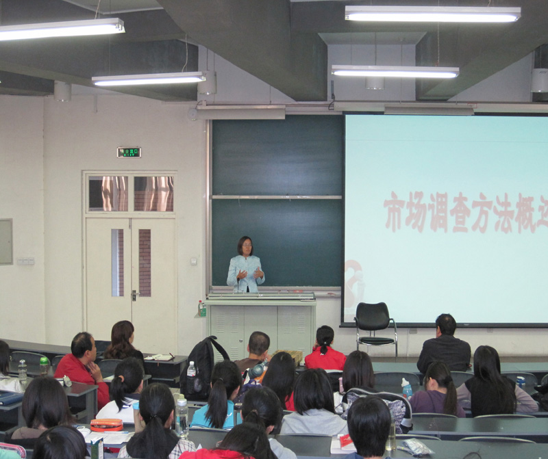 2009年10月15日上午,经管学院邀请零点调查集团副总裁,兼北京零点调查公司总经理,注册咨询师,零点公司专门培训的FG主持人班淼琦女士在教B103做了报告主题为《打开通往市场的一扇门---市场调查方法及问卷设计简介》的报告。来自经管学院及各院系的师生200多人聆听了本次讲座。