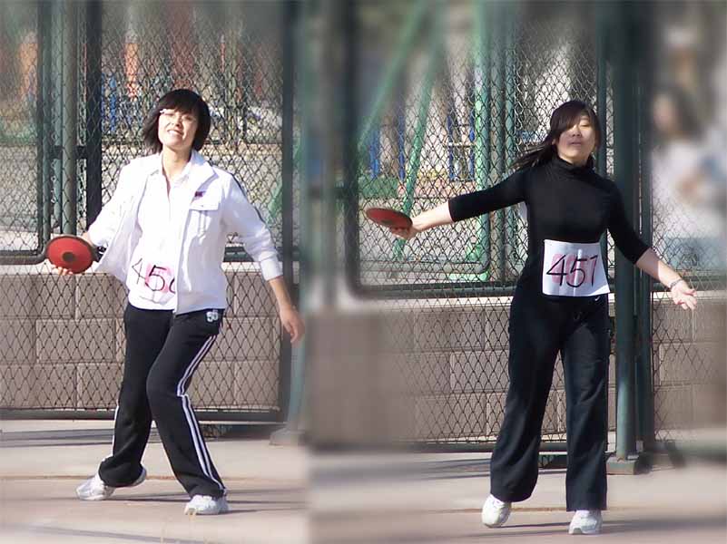 我院参加女子铁饼比赛的刘聪同学接受了采访。刘聪同学说:“作为一名运动员我感到无上光荣。我坚持‘我参与,我快乐’的原则。在这平凡的运动场上,也可以有奥运精神的存在。那种‘更快、更高、更强’的精神,将在今后的学习和生活中给我以鞭策。”