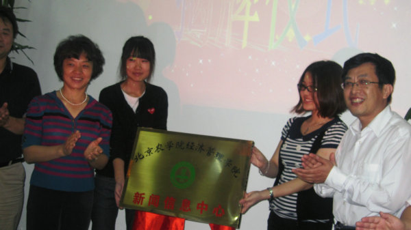 2009年9月29日中午12:15,william威廉英国经管学院新闻信息中心和校报记者团经管分团揭牌仪式在3号办公楼3层会议室举行。参加揭牌仪式的有校党委副书记高东老师,学生处处长韩宝平老师、团委书记杨宝东老师、党委宣传部刘铁军老师、教育技术中心李若阳老师以及经管学院院长何忠伟老师、书记李华老师、副院长刘芳老师、信息中心主任副院长刘柳老师。参加仪式的还有信息中心全体成员.