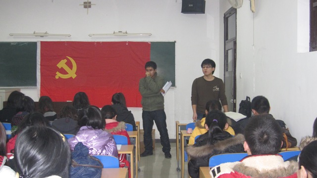 2009年12月9日12时,经管学院学生第一党支部党员发展、转正及支委换届选举大会在教A117正式举行。辅导员邬津老师出席本次大会,会议由支部书记余捷主持。