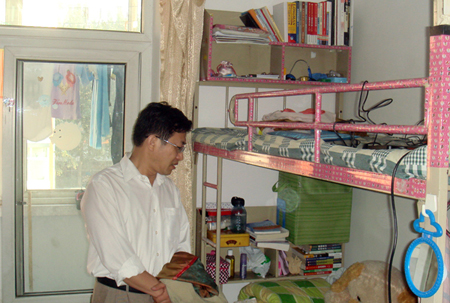 2009年9月10日晚,经管学院何忠伟院长、李华书记走访了经管学院09级研究生新生宿舍,看望了新入学研究生。学院领导检查了新生的宿舍布置情况,并且希望各位新生能够在研究生的生活中,合理安排、保持宿舍的干净、文明和整洁,为研究生阶段的学习创造出一个和谐的生活环境。