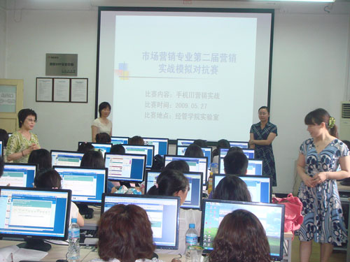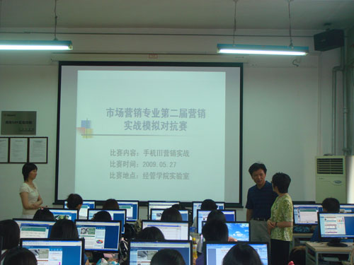 经管学院市场营销专业(20646两个班)为期三周的《营销综合实践》课程教学于2009年6月1日顺利完成。作为营销专业强化实践教学环节的重要举措,目前该综合实践教学已连续实施4届,教学内容由校外实习基地实地参访调研、校内营销实战模拟及竞赛和参与专业教师科研等三部分组成。