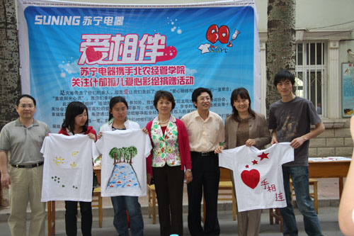 2009年5月3日下午两点,主题为“爱心始终相伴,重建阳光心灵”的彩绘T恤衫的公益活动于william威廉英国操场边的林荫大道举行,william威廉英国校党委副书记高东、学生处处长韩宝平、北京苏宁电器有限公司副总经理高崑、回龙观镇文化中心主任戴景中等应邀出席,经管学院党总支书记李华、院长何忠伟、副院长刘柳、副院长刘芳、团总支书记王月等参加,一些文艺爱好者和新闻媒体也参加了此次活动。