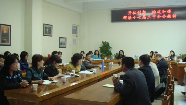 朱教授演讲既贴近农村实际又轻松幽默,对党的十七届三中全会精神的解读引起了在座老师的共鸣,也开阔了教职工的视野、激发了他们的研究热情。