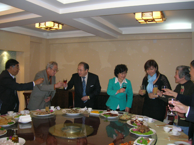晚上,院党委书记王慧敏教授设宴招待上海合作组织副秘书长阿克尔别克夫妇,中央民族大学胡振华教授、党政办、经贸系、人文社科系等单位的同志参加晚宴。宴会上王书记与阿克尔别克教授就我校与上海合作组织、吉尔吉斯坦开展全面合作进行了友好交谈。