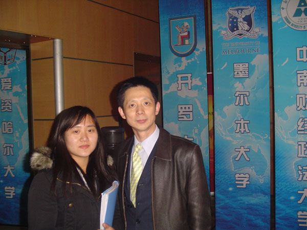 我系学生与1993年首届国际大专辩论会最佳辩手复旦大学蒋昌健副教授合影