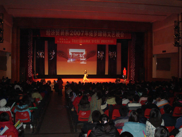 伴随着今年冬天的第一场雪,大家期待已久的经贸系“炫梦似锦”文艺晚会终于在12月11日晚6:30于礼堂揭开了它神秘的面纱。整场晚会围绕着“炫舞年华”、“扬梦起航”、“魅力四射”、“光影绚锦”展开。