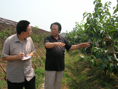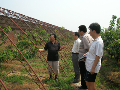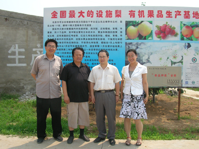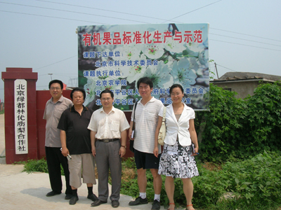 2007年7月21日,在经贸系主任何忠伟老师的带领下,经贸系周云、张子睿、桂琳等老师奔赴平谷区绿都林科技示范园进行了调研,拉开了经贸系师生暑假社会实践活动的序幕。调研期间,北京市绿都林科技示范园任德忠总经理陪同四位老师参观了平谷区绿都林科技示范园,任总经理与园区尉副总经理详细介绍了6年来绿都林科技示范园的发展过程。双方对如何在新形势下,以“公司(园区)+农民合作组织+农户”的模式,把绿都林农业科技示范园区建设成北京市有机水果生产、观光园区和科普示范基地,带动园区周边农民共同发展生产、提高收入等热点问题进行了深入探讨。