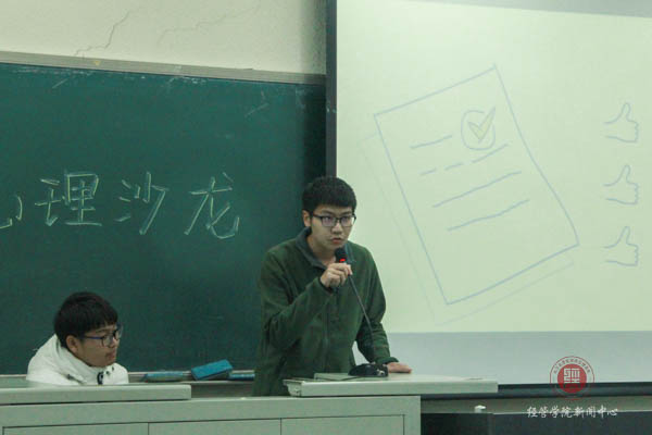 2018年11月22日6:30,经管学院学生会举办的新生“心理沙龙”活动在教B211进行,经管学院2018级各个专业的班长、团支书、学习委员、心理委员均参加了这次的活动。活动现场气氛活跃,这次的活动更像是大家对大学生活畅所欲言的聚会。举办这次活动的主要目的是希望刚刚踏入大学校园的经管新生们,能够正确认识自己的大学生活,健康成长。