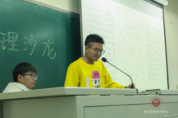 活动第一个环节是由大二的学长分享他生活的经历,他说出了现在很多大学生都面临的问题——生活中有了太多的诱惑,你是否沉迷于它们。令人深思的问题令同学们陷入了思考。对此,同学们每个人都有不同的观点,起立回答问题的同学各自谈了自己的看法,大家在交流中学习了很多。