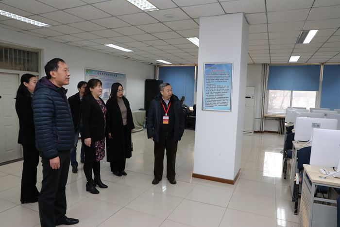 评估专家韩占生副校长一行在学院班子成员的陪同下实地参观了学院市级实验教学示范中心和学院本科教学工作审核评估宣传栏。