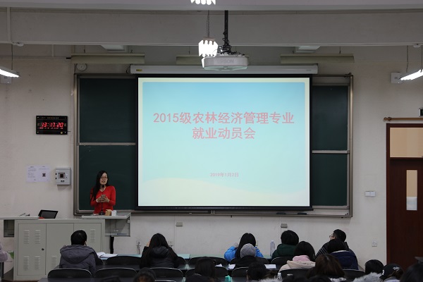 在学生毕业就业动员环节,农经系支部书记田淑敏老师分别从就业形势、就业方式、就业准备三方面进行了详细讲解。提醒同学们及早认清就业形势和就业方式,尽早从就业材料、就业技能和就业预期方面做好就业准备。