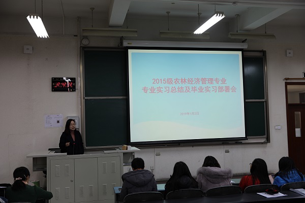 首先,刘笑冰副院长回顾了刚刚结束的本科教学预评估工作,指出专业实习是具有我校特色的“3+1”培养模式的重要组成部分。强调了农林经济管理专业作为国家级特色专业,专业实习环节在其人才培养中的重要地位,并要求农经系全体师生严格按照学校要求认真完成专业实习环节,做好实习总结以及下学期的毕业实习准备。