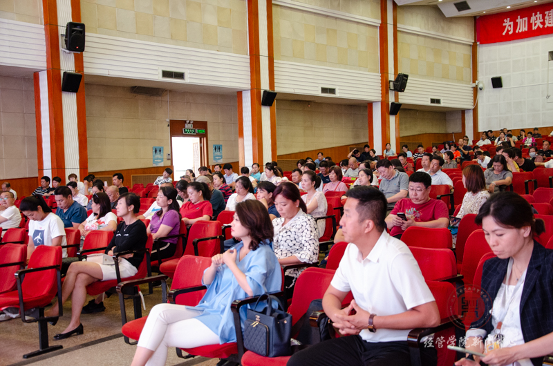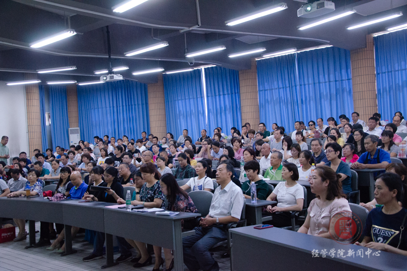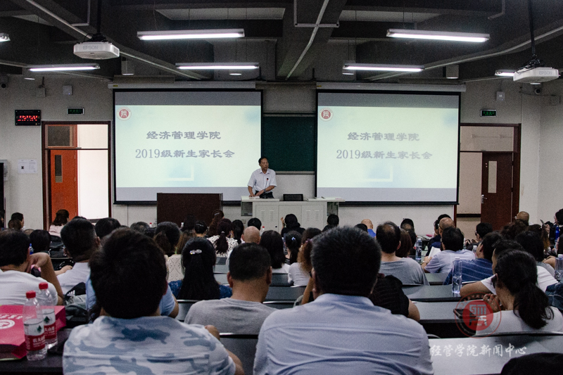 中午12:30经管学院在教B203举行了新生家长会,学院党总支书记胡宝贵、党总支副书记院长刘芳、教学工作副院长刘笑冰、科研工作副院长唐衡、学生工作副院长张晓凤及各系主任、班主任、辅导员参加了新生家长会。
