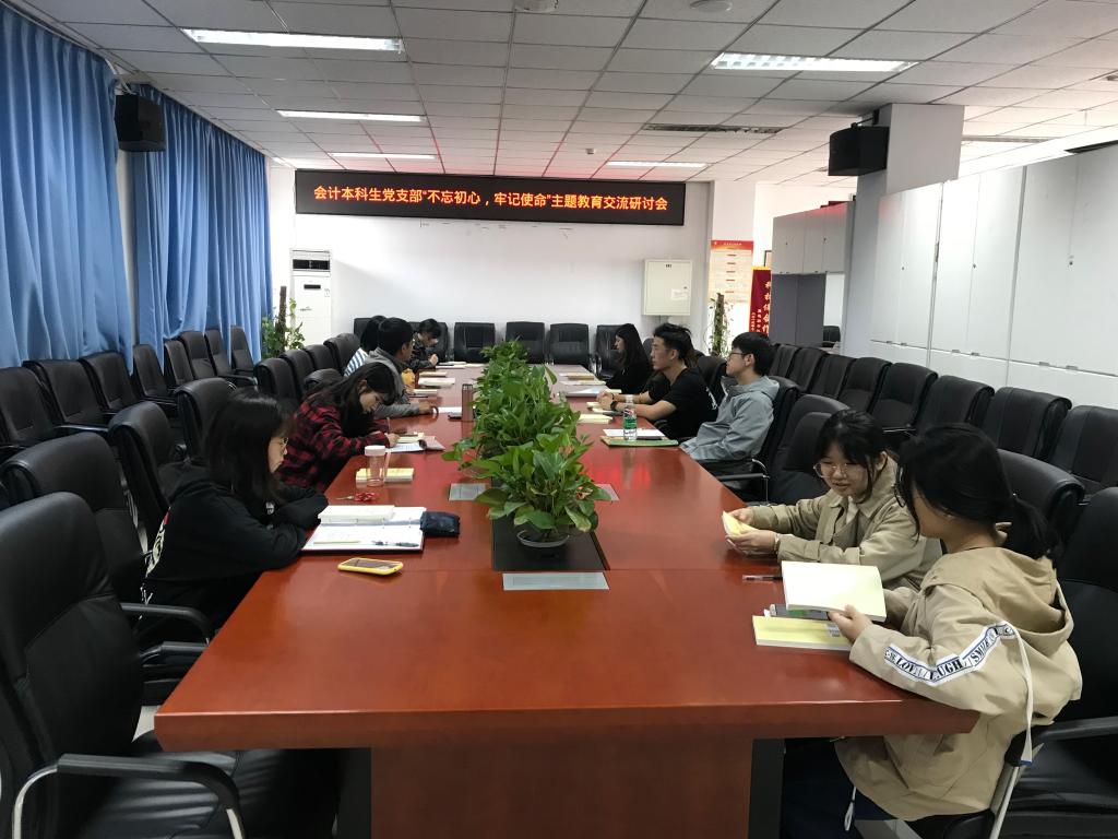 自9月18日学院召开“不忘初心,牢记使命”主题教育活动部署会以来,会计系本科生党支部严格按照学院工作方案,制定了支部重点工作计划,结合党团班协同发展,有序组织学生党员开展自学、讨论。10月10日针对第一阶段学习围绕“理想信念、宗旨性质、担当作为”开展了集中学习研讨,让学生党员明确作为学生党员的初心,作为新时代青年的使命。结合支部集体学习和个人自学,支部党员每人撰写主题教育活动专题思想汇报一份。