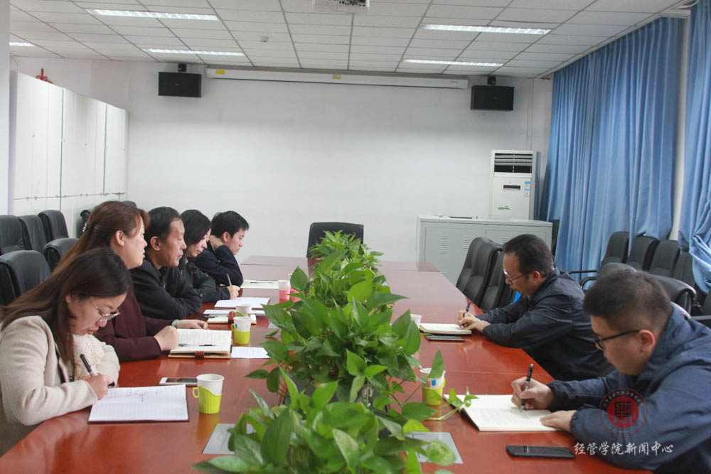 胡宝贵代表经管学院党总支汇报了学院“不忘初心,牢记使命”主题教育情况。重点从前期主题教育开展情况、特色亮点和近期的近期安排进行了汇报。