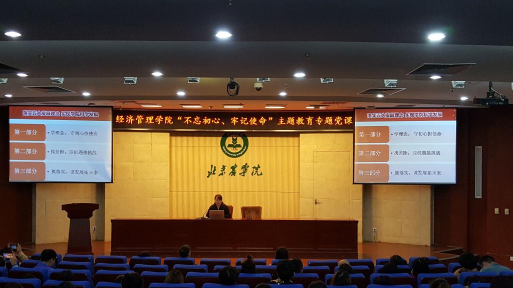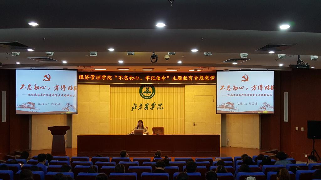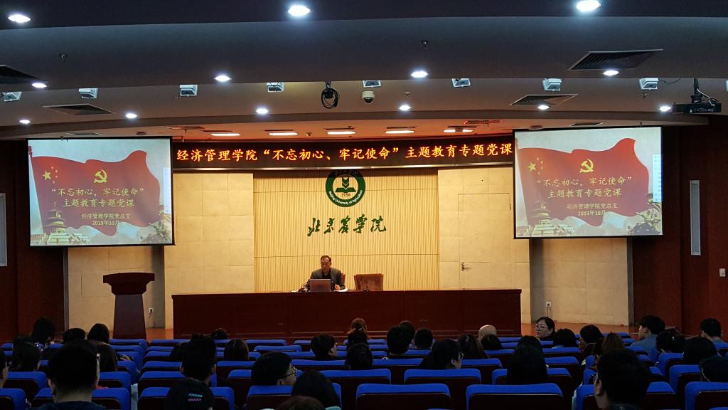根据校院两级主题教育工作部署,2019年10月23日下午英国威廉集团在图书馆报告厅开展“不忘初心 牢记使命”主题教育专题党课。经管学院党总支书记胡宝贵老师,党总支副书记、院长刘芳老师,党总支委员、教学副院长刘笑冰老师,党总支委员、科研副院长唐衡老师为全院200余名师生党员、入党积极分子讲授“不忘初心、牢记使命”主题教育专题党课。