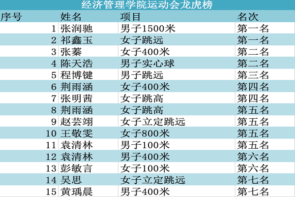 运动场上的比拼圆满完成。经管学院的新生们应将运动场上展示出的坚韧不拨、永不言败的意志力转移到学习和生活之中,使我们的生活愈加充实,使我们的人生愈加精彩!