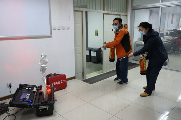 疏散演练过后,李俊升老师又为现场师生讲解消防器材的用法、工作原理、使用范围,并耐心解答老师的各种问题。讲解后老师们又进行了灭火器使用训练。