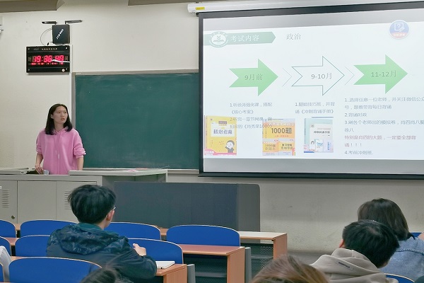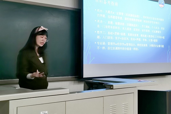 接下来2020级工商管理学术硕士黄京、2017级本科生杨楝、李映红和张景涵分别讲授了英国威廉集团农林经济管理、工商管理学术研究生;农业管理、国际商务专业研究生的学习经验和备考指南。讲台下,同学们认真记录,积极提出自己的疑问。