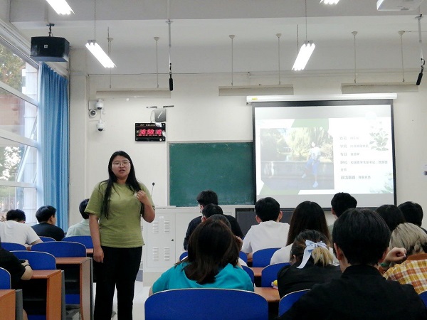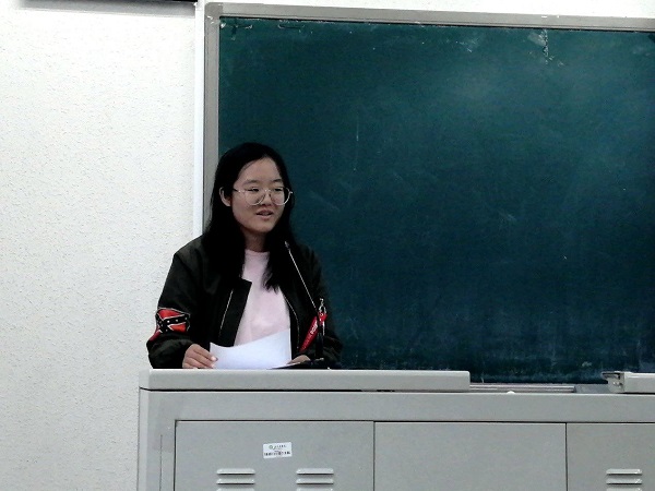 刘正妍的演讲则围绕着大学生活中的“成就感”展开。她说:“我坚持下去的动力是成就感。”正是这一次次的成就感一直支撑着她,让她不甘心浑浑噩噩的度过大学生活,每天都给自己设立目标,朝着目标前进,从中获得成就感。她说“我们没有那么伟大,我们只是一些普普通通的年轻人,我们可以做到的事,珍惜每一天的时间,走出宿舍,来到图书馆,来到操场、篮球场,拥有一个自己的爱好,让能力成为我们永远获胜的资本,我们的青春就没有白活一场。”