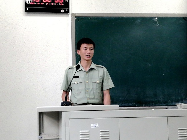 我校优秀退伍大学生士兵谭旭飞则讲述了他的军旅生涯,大一下学期,深受父亲的影响,他选择作为大学生士兵参军,部队艰苦的生活并没有使他逃避退缩而是越挫越勇,他深情的说:“我以自己是一名军人而自豪,我因我继承父辈的荣光而骄傲,我以我是钢铁长城中的一员而自豪,为国家做出了应有的贡献。争过光,发过热,洒过汗,流过血,奉献过热血的青春”。