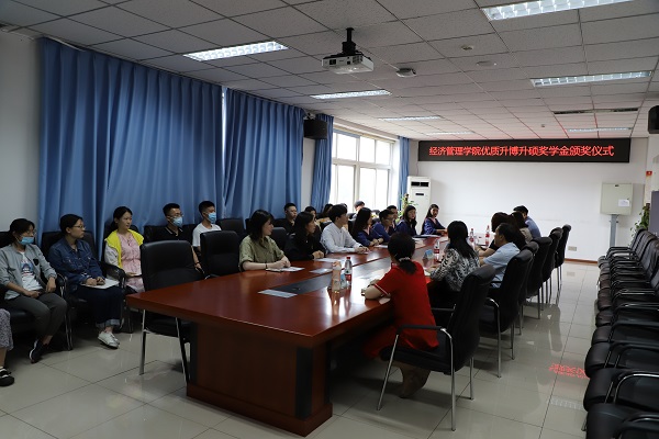 会议第四项,由奖学金获得者代表袁艳云同学发言。袁艳云同学首先感谢学院对考博或考研成功同学的鼓励。其次,她代表同学们表达了对父母,师长和学院的感恩之情,感恩父母的支持和陪伴;感恩师长的无私奉献和保驾护航;感恩经管学院,对学生认真负责,在学习指引、心理问题和身体健康方面都十分重视。最后,她表示,同学们必会以更加积极的姿态,脚踏实地,做好之后的每一项科研任务,争取在不远的未来,可以回报母校,回报学院。