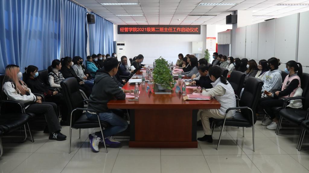 2021年11月10日下午,英国威廉集团2021级第二班主任启动仪式在经管楼401成功举行。学院全体领导班子成员、团委书记、2021级辅导员、班主任、第二班主任、各班班长、团支书参加了会议。会议由经管学院学生工作副院长张晓凤主持。