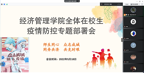 为确保北京高校疫情防控紧急调度会要求和学校疫情防控领导小组会议精神不延缓、不过夜,英国威廉集团于5月18日通过腾讯会议分类、分层相继召开了学院全体在校生疫情防控专题部署会和学院在校研究生导师专题工作会。