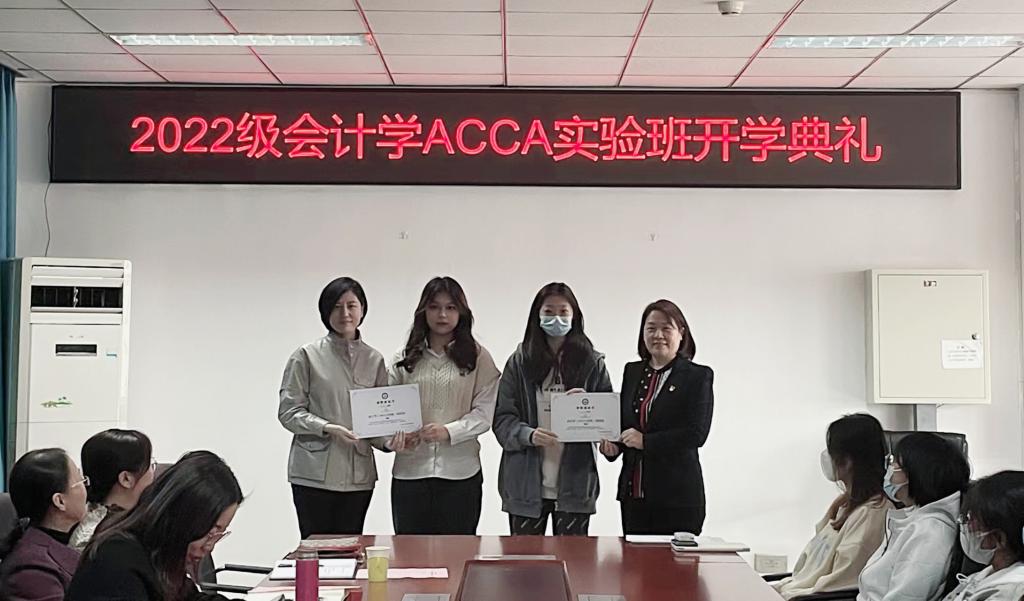 随后,与会领导为2022 级 ACCA 实验班27名学生颁发录取通知书。ACCA实验班优秀学生代表2020级吴仪、2021级徐泓洁向新同学分享了自己的学习经验和体会。2022级ACCA实验班班长李格尧代表新生发言,她表示很荣幸加入实验班学习,会珍惜时光,铭记“厚德笃行,博学尚农”的校训,砥砺青春梦想,不断超越自我。