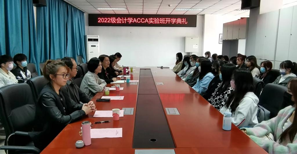 2022年10月13日中午,经管学院2022级会计学ACCA实验班开班仪式在经管楼401室成功举行。出席这次开班仪式的有经管学院院长刘芳、东亚国际教育首席执行官张红霞、东亚国际教育高校合作部经理秦勇、经管学院副院长刘笑冰、会计系主任张宁、会计系支部书记白华、会计系副主任杜孝森、会计系秘书和2022级ACCA实验班班主任宋沂邈、2020、2021级ACCA实验班优秀学生代表和2022级ACCA实验班全体27名同学。开班仪式由经管学院副院长刘笑冰主持。