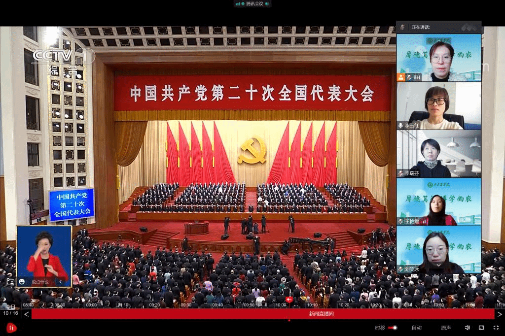 会计系教师党支部书记白华:刚刚收看了党的二十大开幕会,认真聆听了习近平总书记的报告,振奋人心,深受鼓舞。作为一名高校教师党员,我们更要坚守为党育人、为国育才的初心使命,继续用习近平新时代中国特色社会主义思想指导教育教学实践,立德树人、守正创新,全心全意做好高等农林教育,为乡村振兴强农兴农输送高质量人才,为全面建设社会主义现代化国家、全面推进中华民族伟大复兴做出新的更大贡献。