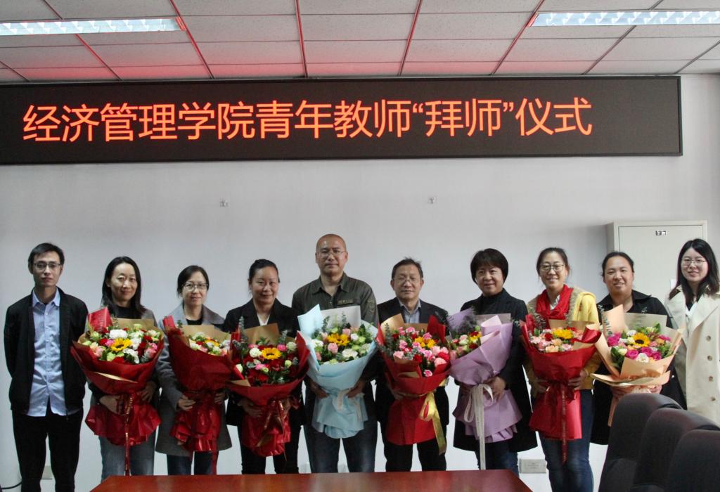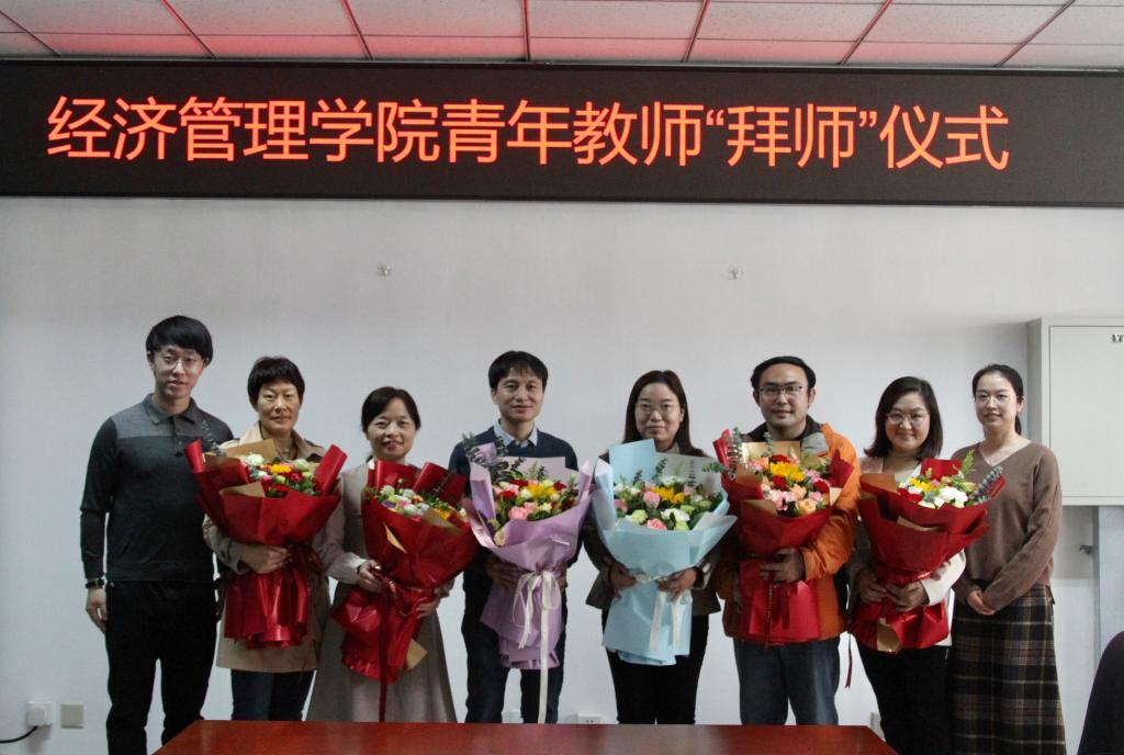最后,工商管理系和农经系新入职教师为导师团队成员献花,并合影留念。