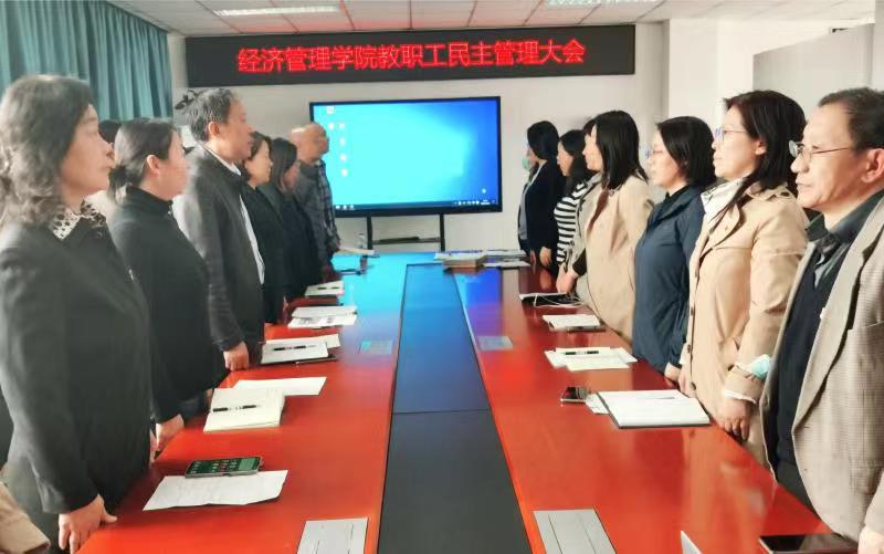 2023年4月12日下午,经管学院全体教职工在经管楼401召开了2022年教职工民主管理大会。