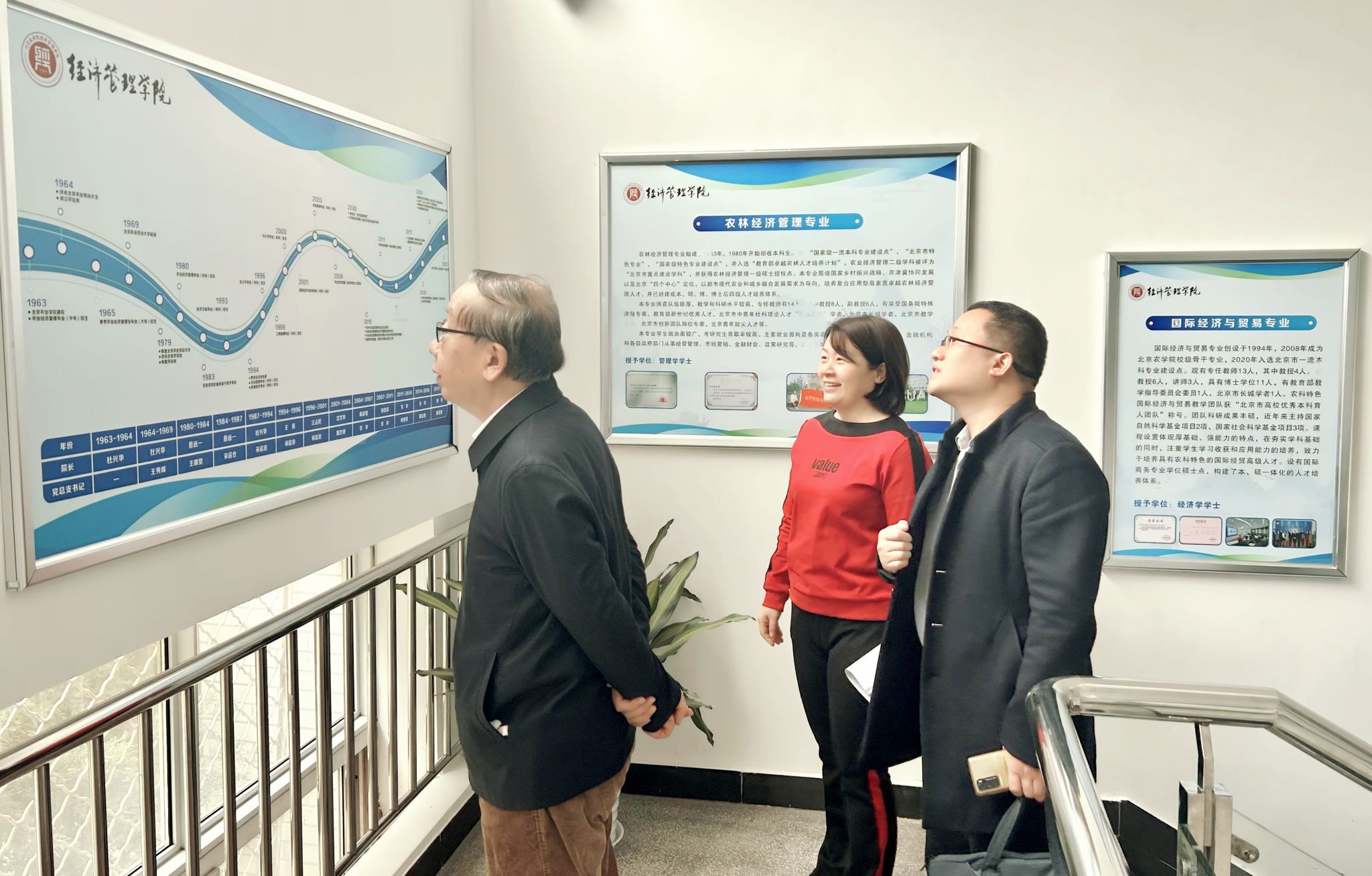 刘雍潜一行参观了经管学院实验教学中心的农产品融媒体人才培养中心、经管类跨专业综合实训室以及三农大数据速调中心等,并对学院在经管类实践人才培养领域所做探索和成效给予了高度评价。双方对新基建数字化背景下,教育数字化赋能三农、赋能乡村振兴人才培养等话题进行了深入探讨。