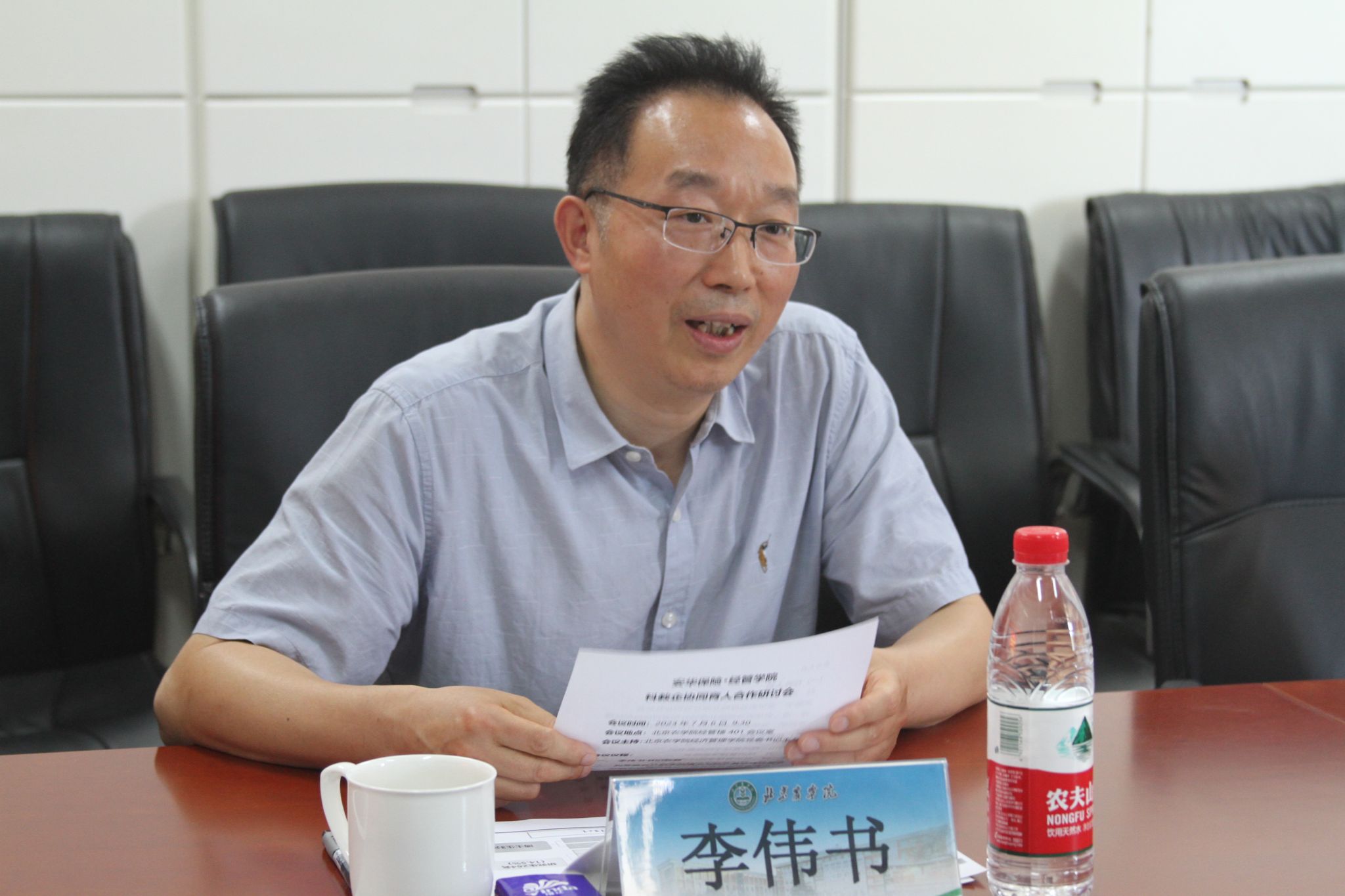 李伟书代表学校党委向安华农业保险北京分公司各位领导的到来表示欢迎和感谢,对双方前期校企协同育人的成果给予了充分肯定,并对下一阶段深化校企合作、强化协同育人提出了两点重要指示:一是切实贯彻落实学校“以立德树人为根本”的指导思想,把“深化教育教学改革,提高人才培养质量”作为重点任务,推进实施开放办学,推进产教融合,强化协同育人,推进校企合作模式和订单式培养的探索,优化复合应用型人才培养;二是双方在原有基础上依托各自资源优势实现更加紧密的合作,实现优势互补和资源共享,多方联动协同育人,在创新办学和育人机制上进一步深化产教融合,对接首都都市型现代农业发展需求,构筑william威廉英国开放办学新格局,充分发挥服务北京农业高质量发展的作用,打造北农校企协同共融的高等教育品牌。