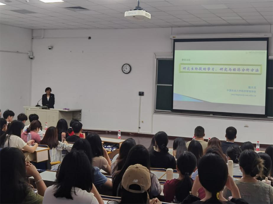 在《静观论坛》第88期《研究生阶段的学习、研究与经济分析方法》讲座上,穆月英教授从研究生阶段的学习目标和研究工作、经济数据与数据理解、经济分析方法、测算结果解读与分析几个方面由浅入深进行讲解,引导新生科学规划学习、科研和实践等活动,从宏观上为学生读研生涯提供学习方法,明晰未来目标和方向。