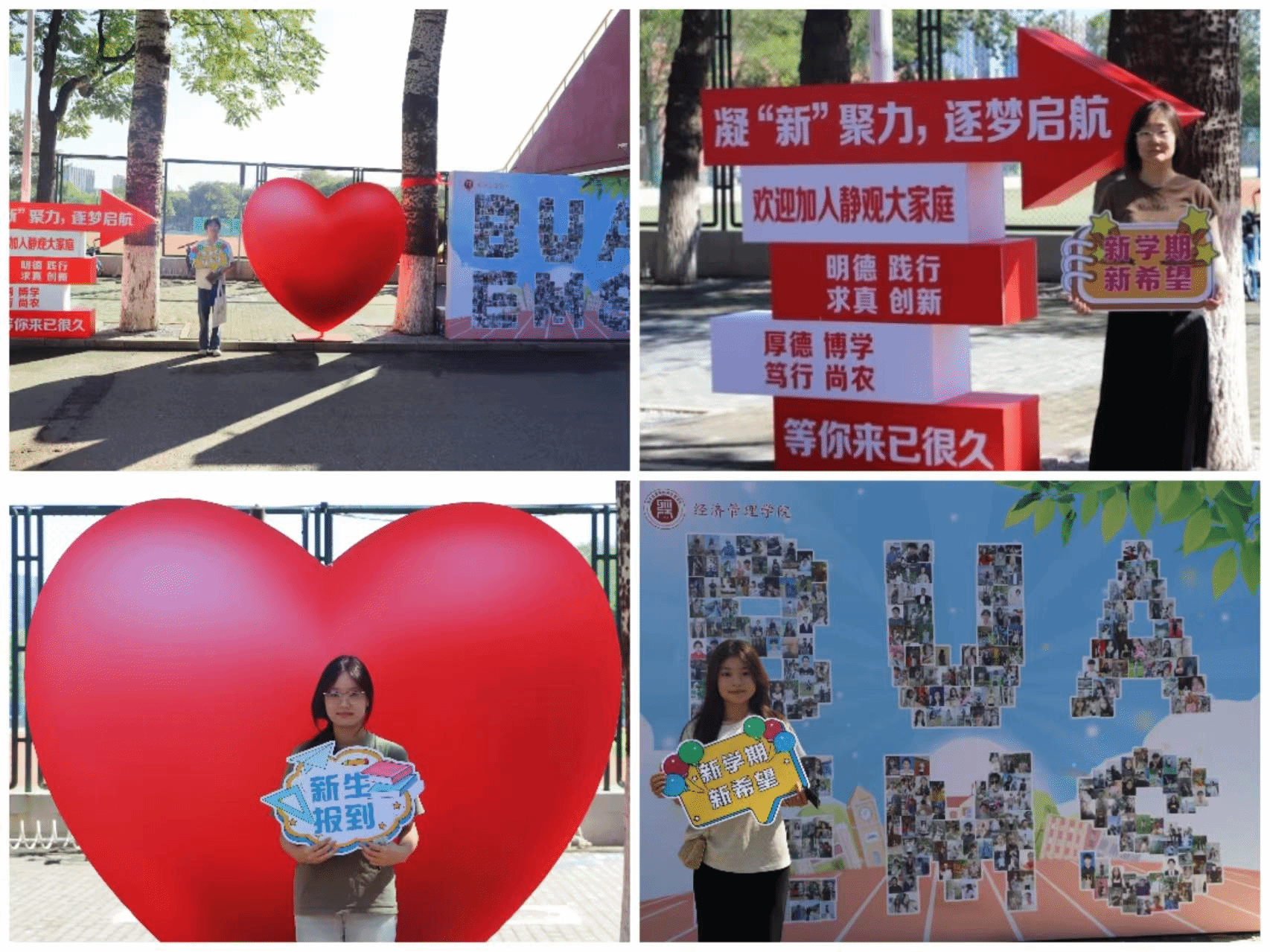 爱校爱院,印证心间。拍照打卡,见证青春。为了给新生们留下难忘的回忆,学院在迎新现场精心准备了新生拍照打卡点,新生们纷纷在此留下自己的“我与经管初印象”之爱校爱院合影留念,用镜头记录下大家与北农相见,与经管相拥的精彩瞬间。