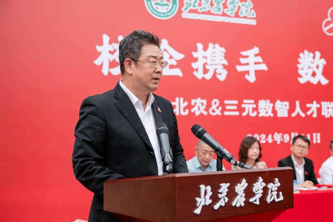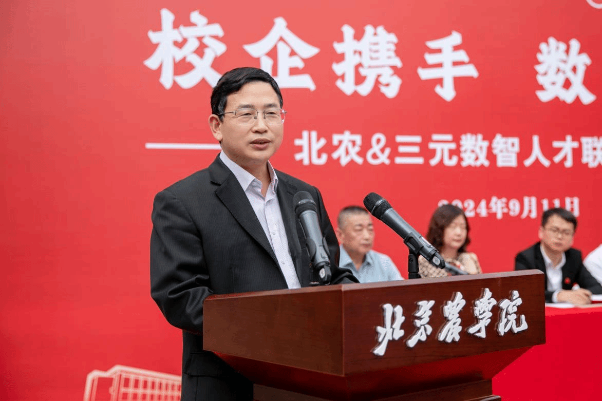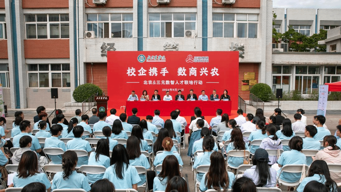“北农&三元数智人才联培行动”旨在数智赋能“三农”发展,点燃乡村振兴“强引擎”,践行强农兴农使命,培养高层次复合型农林人才。通过本次行动,以数商兴农为“产教融合、校企合作”人才培养模式带来新生机,为人才协同共育注入新活力,构建校企数智人才培育共同体,形成“学校主导、企业融入、产业参与”的多元协同育人机制,深化成果推广、学术交流、人才培训等方面的合作,推动产业链、人才链、创新链有机融合,不断提升校企合作的质量和效益。