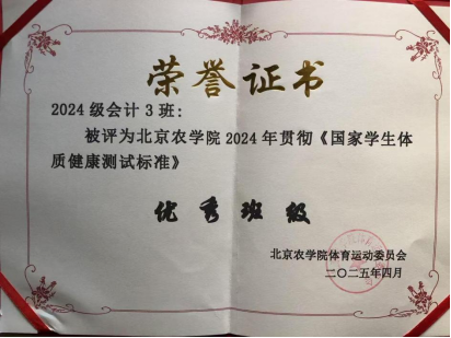 2024级会计3班荣获“体测优秀班级”称号,赵振远等10名同学荣获“2024年度体测优秀学生”称号。