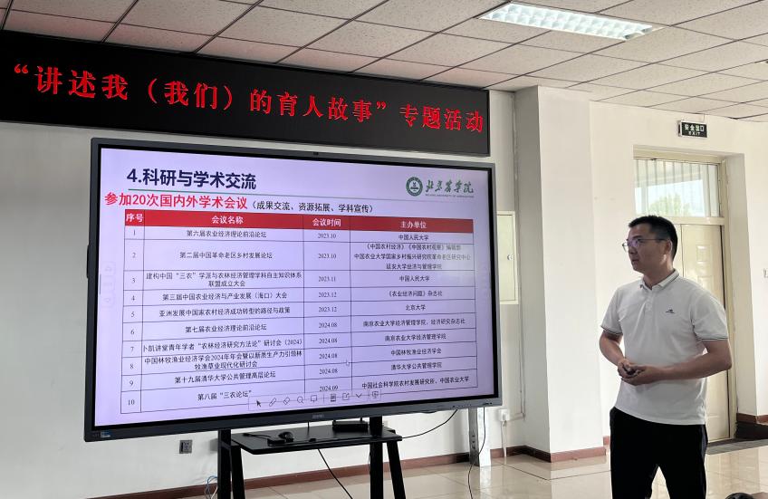 会上,农林经济管理系教师张强强围绕近期他作为论文第一作者,何忠伟教授为通讯作者在国际知名期刊《Sustainable Cities and Society》发表高水平学术论文的经历,结合自身参与学科建设、开展科学研究、做好学生班级管理及个人发展等内容,分享了自己的育人故事。他以“科研”为支点,讲述了十年来科研如何支撑个人发展、助力个人成长的心路历程,并从科研与班级建设、日常工作、学科建设、学术交流、个人发展等方面展开专题讲述。他分享道:“科研育人要做到‘八要’——要健康、要学习、要合作、要生活、要坚持、要热爱、要分享、要尊重。”这番真诚的经验分享引发了在场教师的共鸣。