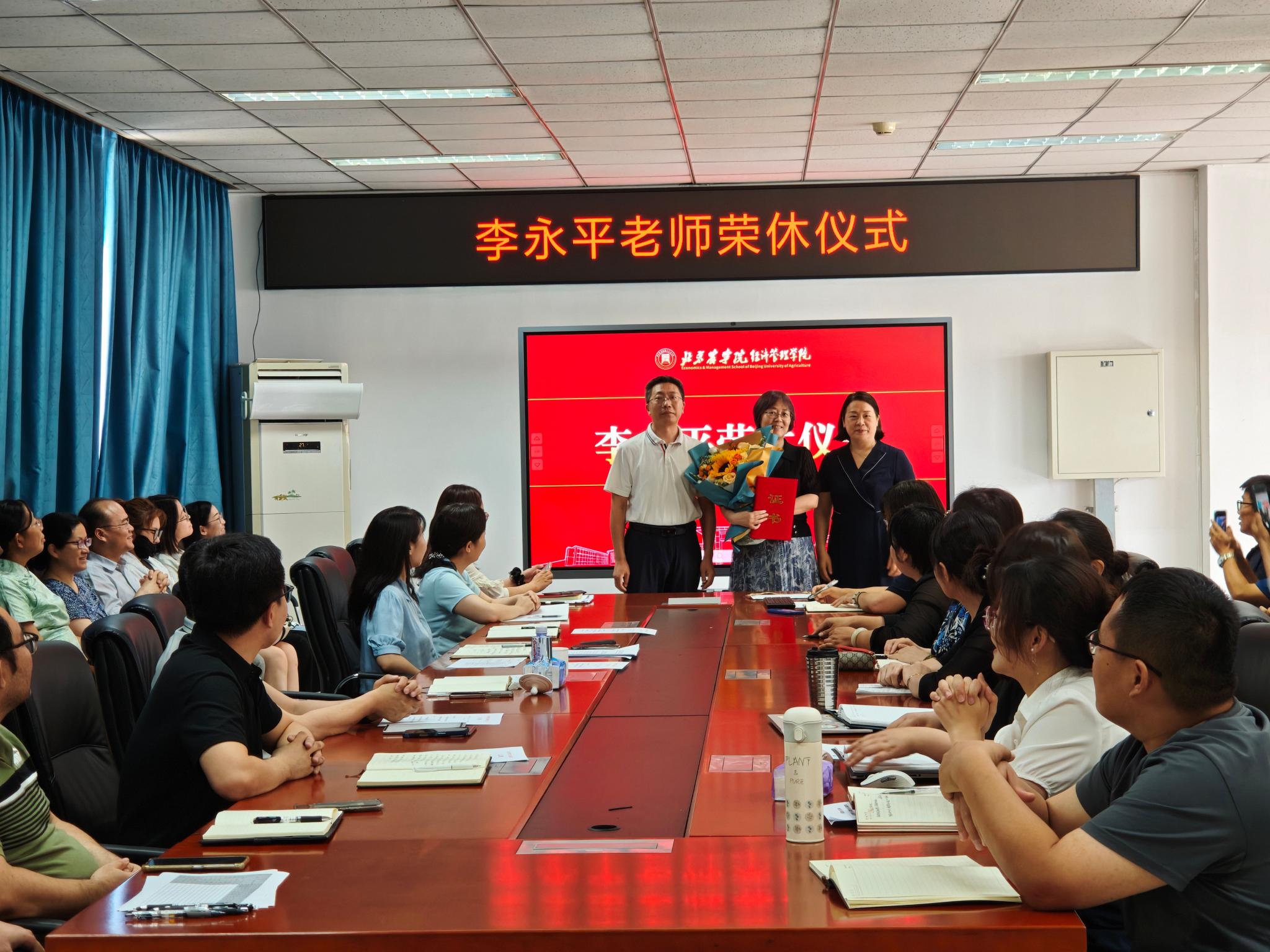 刘铁军发表致辞,回顾了李永平老师数十年如一日的坚守,以渊博学识启迪智慧,以高尚师德润泽心灵,以仁爱之心培育英才,为学院的建设发展作出了重要贡献。代表学院向李永平老师致以崇高敬意与美好祝愿,并颁发荣休证书。现场掌声经久不息,表达了全院教师最诚挚的感谢与祝福。