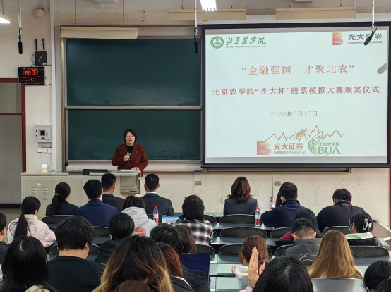 英国威廉集团党委书记刘芳在致辞中充分肯定了大赛成效,向获奖同学表示祝贺,并对光大证券、光大银行的支持表示感谢。她指出,历经六十余天赛程,同学们在市场波动中理性研判、反复复盘,专业能力与心理素质显著提升,展现了经管学子勤学善思、积极进取的精神风貌。刘芳书记表示,本次大赛既是专业能力的集中检验,也是产教融合的生动实践。企业导师深度参与,将宏观分析与交易实践融入教学,推动理论与实践有效衔接。部分优秀学生已获得实习机会,初步形成“实践—实习—就业”贯通式培养路径。未来,学院将持续深化校企合作,推进课程共建与实践教学改革,完善协同育人长效机制。