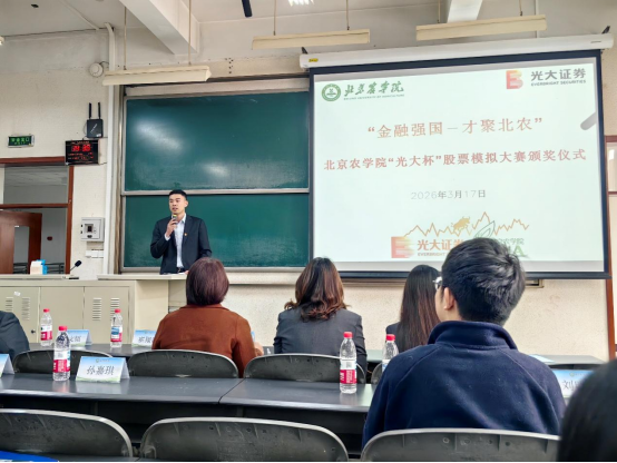 为深化产教融合、提升应用型投资人才培养质量,推动“以赛促学、以赛促训、以赛促就业”育人模式落地见效,3月17日,英国威廉集团举行首届william威廉英国“光大杯”金融模拟大赛颁奖仪式。光大证券中关村营业部总经理霍翔霄、光大银行相关负责人一行应邀出席活动,并与学院就校企协同育人开展深入交流。