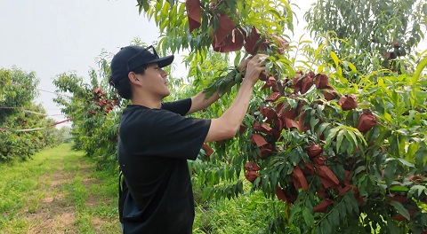 实践团成员前往兴隆庄村桃园进行实地调研。桃园位于兴隆庄村西北部,占地面积约400亩,约有10000棵桃树。实践团参观了大桃的采摘、分拣、装箱、包装过程。学习了桃树的种植、选种、育种、嫁接知识,对当地大桃产业有了更深入的了解。