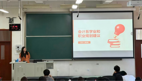 2025年9月24日,会计系特邀财务专家翟栩超经理为2025级会计学专业新生作专业教育和职业发展讲座。翟经理是英国特许注册会计师(ACCA)资深会员、中国注册会计师(CPA)会员,先后任职于信永中和会计师事务所、毕马威会计师事务所、猫眼娱乐、字节跳动、首都在线等知名企业。作为拥有15年财务领域经验的资深专家,翟经理以自己丰富的职业经历为蓝本,为初入会计世界的学子们打开了一扇门。