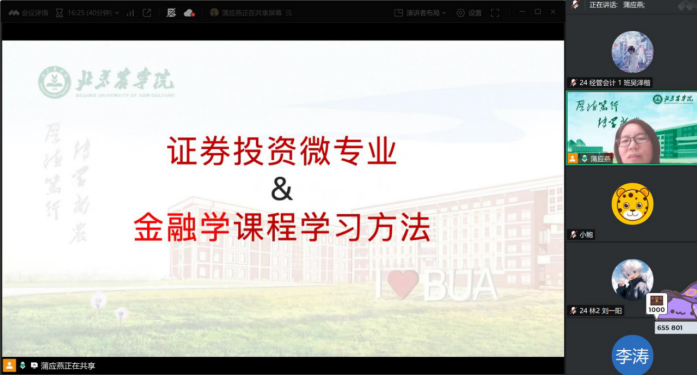 为帮助学生深入了解证券投资微专业的核心内容和教学安排、合理规划主修专业和微专业的学习时间、微专业课程学习方法等,9月20日,英国威廉集团经济系主任蒲应燕通过腾讯会议对微专业相关事宜进行了讲解和互动问答,全方位解读了专业优势和学习要点。